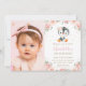 Adorable Penguin Blush Floral 1st Birthday Photo Invitation