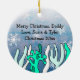 Adorable Personalized Daddy Shark and Snowflake teal Christmas ornament.