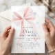Plain white envelopes are included with paper invitations and will come to fit the invitation size you select. If you don’t need the envelopes, you may choose to not receive them by selecting the dropdown below "Envelopes" and choosing "None." If you’d like to have a design on your envelopes, you can browse all of these available envelopes to find the design that complements your Elegant Pink Bow Baby Shower Invitation.
