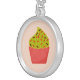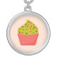 adorable pink cupcake silver plated necklace
