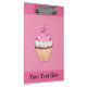 Clipboard with an adorable pink cupcake with a cherry on top. The front of the clipboard has a cupcake design with space for text. The back has the same cupcake design, tiled diagonally.