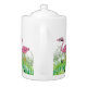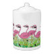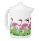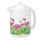 Pink Flamingos teapot. Adorable flamingos in the grass adorn this sweet little porcelain teapot. A fun gift for anyone who loves cute flamingos. Unique design and gift item for any occasion.