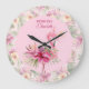 Adorable floral pink flamingo with golden crown and exotic floral background