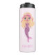 Adorable cartoon mermaid with long blonde and pink hair, big blue eyes, and a pink mermaid scales tail. Personalize with a name.