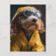 Adorable Poodle Mix Dog in a yellow raincoat Postcard