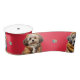 Adorable Puppies Christmas Holiday on Red Satin Ribbon