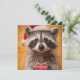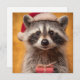 Adorable Raccoon in a Santa Hat Holding a Present Holiday Card