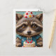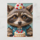 An adorable raccoon with a party hat and birthday cake fantasy fairy tale art
