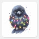AI generated art of an adorable raven wrapped in Christmas lights in a watercolor style