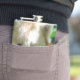 Well made flask, a little better than I had expected. Flask came in clear plastic box which gave it a nice presentation when I took it out of the zazzle packaging. Image is not printed on flask but on sticker. Don't know how this will hold up I haven't used it yet. This would make a Great gift! I plan to purchase more for friends! Cheers. I thought a little brighter than computer. Very crisp, writing wasn't