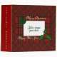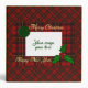 Personalize with your image! Adorable festive Christmas green and red tartan with a green button on top and holly twig on the bottom and Text that you can not customize: Christmas & Happy New Year.