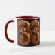 Adorable Ruby Cavalier Spaniel mug. The Spaniel is licking it's Paw in a cute pose.