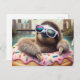 Adorable sloth enjoying life and floating in a pink doughnut AI generated art