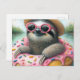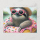 Adorable Sloth floating in a Glazed Doughnut Postcard
