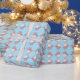 This fun pattern is made up of rows of snowmen. Each playful snowman is wearing a red scarf and blue hat. The light blue background can be customized.