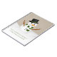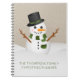 This festive item features Destei's cartoon illustration of a cute snowman. The snowman is wearing a black hat and a scarf that has green and white stripes. The background color is beige with a pattern of white dots. Under the snowman there is a personalizable text area for the title.