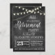 Adorable surprise retirement invitation with a faux chalkboard look and beautiful string light graphics!
