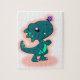 An adorable teal Tyrannosaurus perfect for any dinosaur lover.