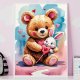 Adorable Teddy Bear Hugging Bunny with Hearts Poster