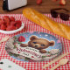 A charming illustration featuring a cute teddy bear surrounded by roses and hearts, celebrating Valentine's Day, perfect for expressing love and affection.