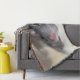A quality printed throw has its advantages. This is a much finer weave throw than its loopier cousins, and though lighter, it is worth the investment for custom room accessorizing. The back is much prettier than the typical brown, and the fringe on the long sides very vivid, the selvage nicely done. Before photographing, I washed the throw in cold water, delicate, with a thicker woven throw the same size. On tumble dry low, this throw was dry in half the time as the other. This is a very practical quality if you use throws for furniture covers or to wrap up in frequently. The sleekness of the fabric makes it a great layer for accenting or protecting without the feeling of sitting on too much stuff. Perfect for napping or when you feel a light chill coming on. The color printing is beautiful and on this fabric, matched the design and color of my Photoshop image. This is an advantage for blending room fabrics and colors. The fringe on the short sides prints the colors from the design image and therefore varies from the side fringe. I streaked a white fractal line through the plaid pattern to give the illusion of weaving. This printed as crisp as an illusory thread, and put some white in the short side fringe, showing another advantage of print vs loomed- for artistic purposes, line lines, detail, and color integrity can be planned and preserved. My loomed throws have color limitations and more of a needlepoint texture. Print throws reproduce an exact image. The throw felt a little stiff straight out of the package, but this went away in the first delicate wash. Of course I searched the wash water for ink or bleeding and there was none.