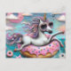 Adorable Unicorn floating on a Glazed Doughnut Postcard