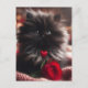 An adorable fluffy black kitten with a rose and heart AI generated Valentine art