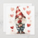 This adorable illustration features a charming gnome holding a single red rose, surrounded by a flurry of hearts. Perfect for Valentine's Day, this whimsical image is sure to bring a smile to your face.