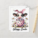 A funny adorable Easter cow hatched from a pink spotted egg and wearing bunny ears AI generated art