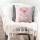 An adorable watercolor pig with a floral crown over a background of pink stripes.