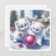 Adorable White Kittens Pink Christmas Card