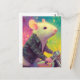 Adorable White Mouse in a black leather jacket Postcard