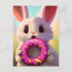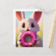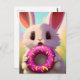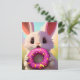 Adorable white rabbit with a pink donut postcard