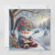 Adorable Winter Gnome in a Cozy Winter Landscape Holiday Card