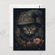 An adorable witch cat on a black background with gold details and flowers AI generated