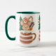 A precious animal in a cup of cheer with Christmas elements on a mug of your favorite, holiday beverage.