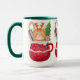 A delightful cat animal with antlers in a cup of cheer with Christmas elements on a mug of your favorite, holiday beverage.
