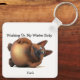 Cuddly image on a keychain of a chubby dog with the words, "Working On My Winter Body." Customize with your own name or other text by clicking on "Personalize."
