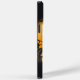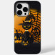 A Halloween image on an iPhone 14 case for your new phone of a cat with a witch's hat and a pumpkin.