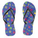 Show off your Synthwave/Vaporwave style with these flip flops designed with geometric shapes on a blue background in the Memphis style.