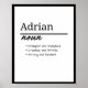 At its heart lies Adrian's name, elegantly depicted in a custom design that reflects his individuality. Surrounding it is a heartfelt definition that celebrates his character traits, making it a thoughtful addition to any space.