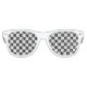 Eyepster fun party shades shown in white frames with a black and white race flag print.