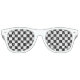 Eyepster fun party shades shown in white frames with a black and white race flag print. You can change frame colors, Customize this item or buy as is.