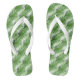 Adult flip flops are shown in white with a tropical palms print.