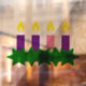 Observe the tradition of the Advent wreath without the fire hazard or the need for a large space. This window cling design features flames that are separate pieces so they can be added on top of each candle for each Sunday in Advent. By displaying an Advent wreath in a window you are able to share the hope and joy of Advent with people passing by. Great for classrooms, offices, front doors and more.