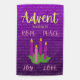 This special Advent flag features the four traditional weekly themes of Advent: Hope, Peace, Joy, and Love, surrounding a fully lit Advent Wreath, overlaying the text of St. Ambrose's hymn, "Savior of the Nations, Come." Designed by a Catholic wife and mother.