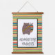 Adorable wall tapestry features Boho Bear with his colorful quiver of arrows, "Adventure Awaits" text and multicolored striped background