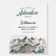 This couples baby shower welcome sign offers an adventure theme showcasing a watercolor wilderness landscape of mountains, ponds and pine trees. This invite is perfect for a rustic outdoor event.
