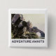Adventure Awaits text which is customizable by you. Statue of Cthulhu on a fantasy landscape by the sea, with a ship coming through the archway.