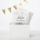 This baby shower favor bag offers an adventure theme showcasing a watercolor wilderness landscape of mountains, ponds and pine trees.
